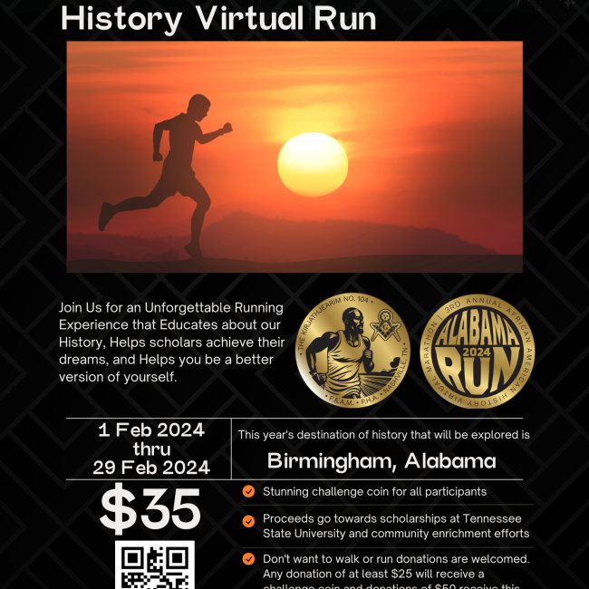 This groups organizes virtual marathons where all the proceeds goes to THE Kirjathjearim Lodge No. 104 PHA Scholarship at Tennessee State University for BIS and STEM majors